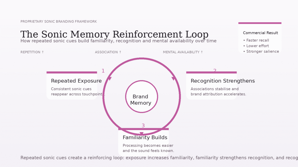 The Sonic Memory Reinforcement Loop demonstrates that brand sound becomes powerful not simply through creativity, but through repeated, structured exposure.